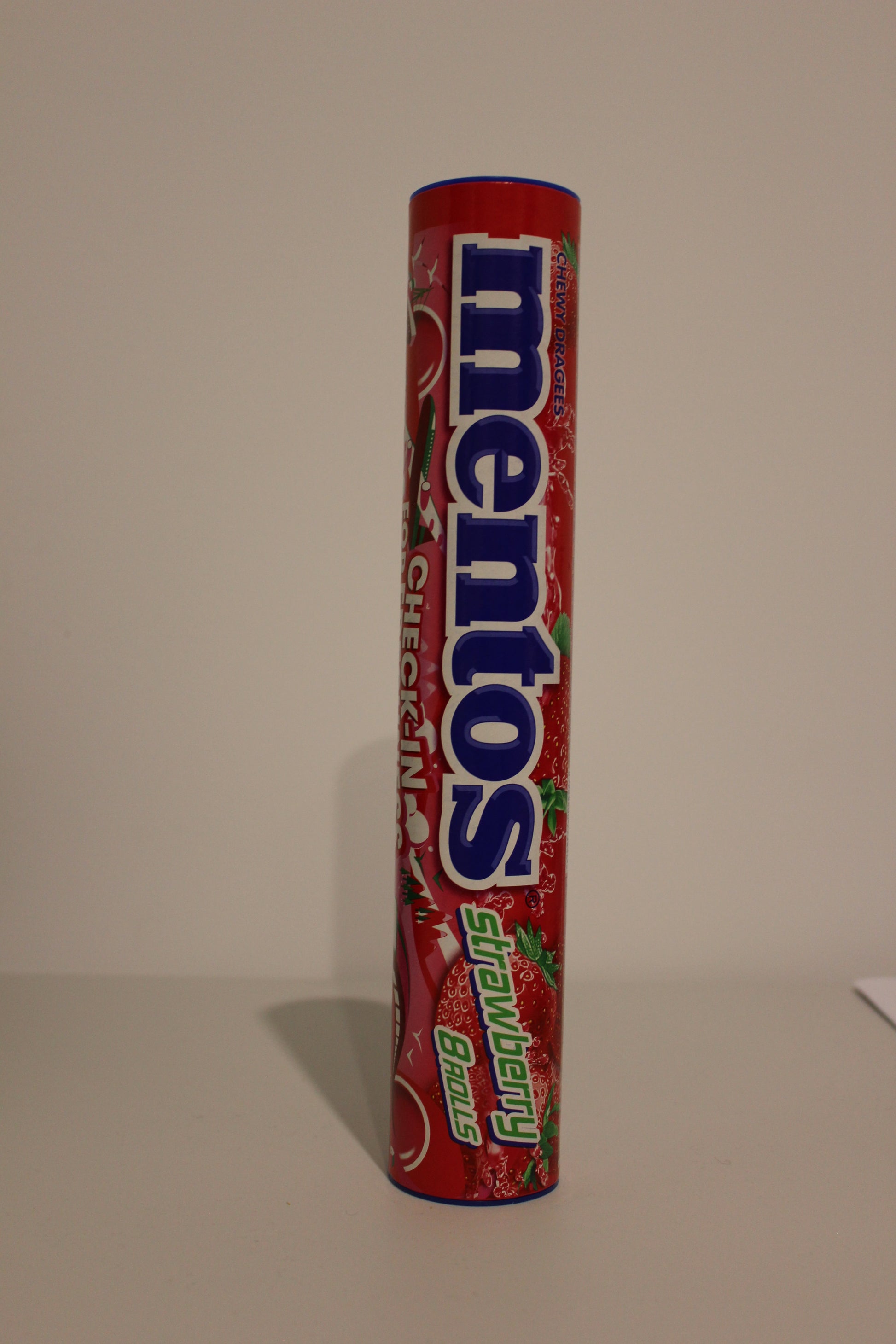 Sucre, sirop de glucose, jus de fraise (2%), huile de noixde coco totalement hydrogénée, acidifiant (acide citrique), fécule, arôme, maltodextrine, agents épaississants (gomme gellane, gomme de cellulose, gomme arabique), émulsifiant (sucroesters d'acides gras), agents d'enrobage (cire de carnauba, cire d’abeille), colorant (rouge de betterave).